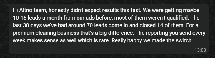 - Clear weekly reporting: What we tested, what won, what we’re scaling next. No fluff.